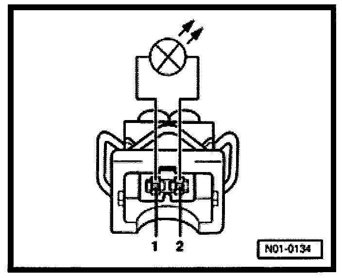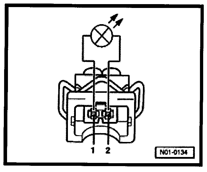 - Check wire between Secondary Air Injection (AIR) pump motor -V101- and terminal 1 and body Ground (GND) for open circuit.
