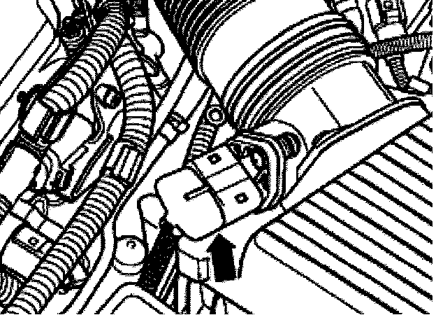- Disconnect harness connector (arrow) for ignition coil power output stage.