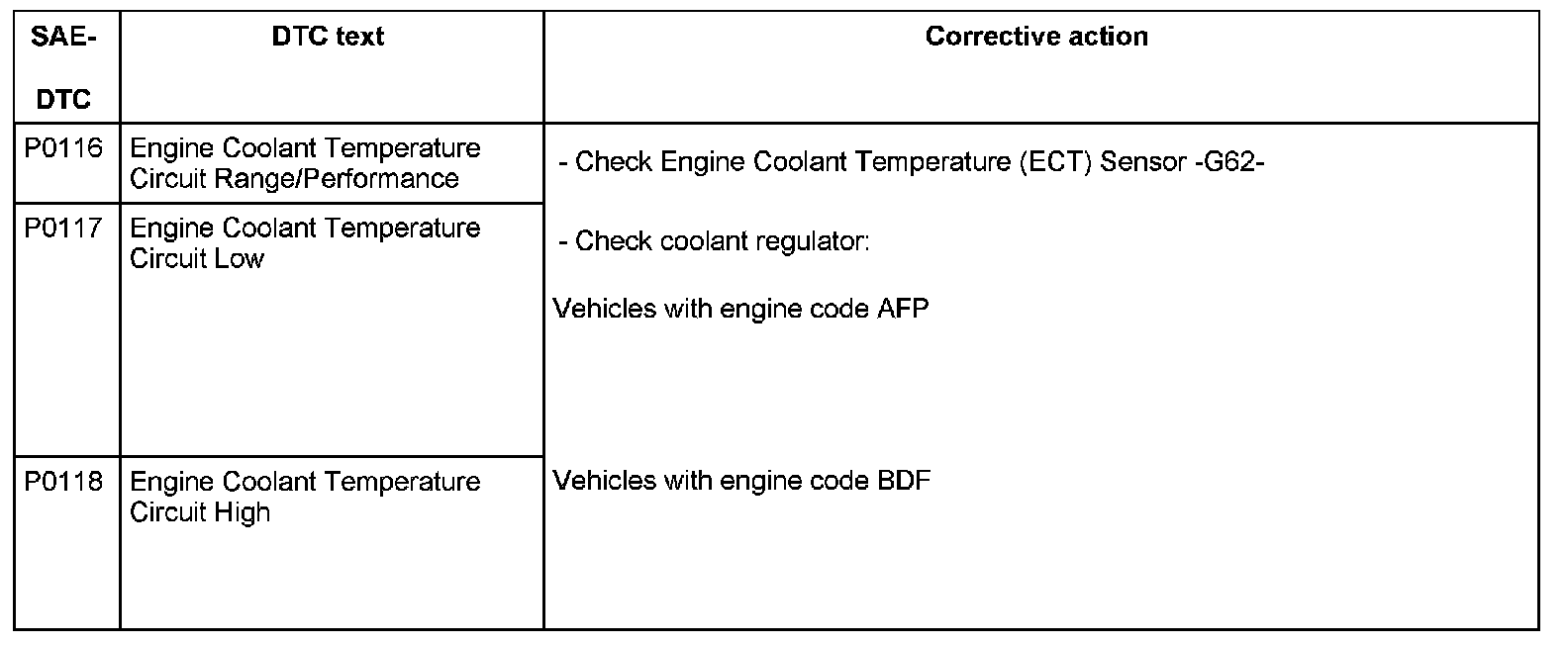 DTC P0116 - P0118:
