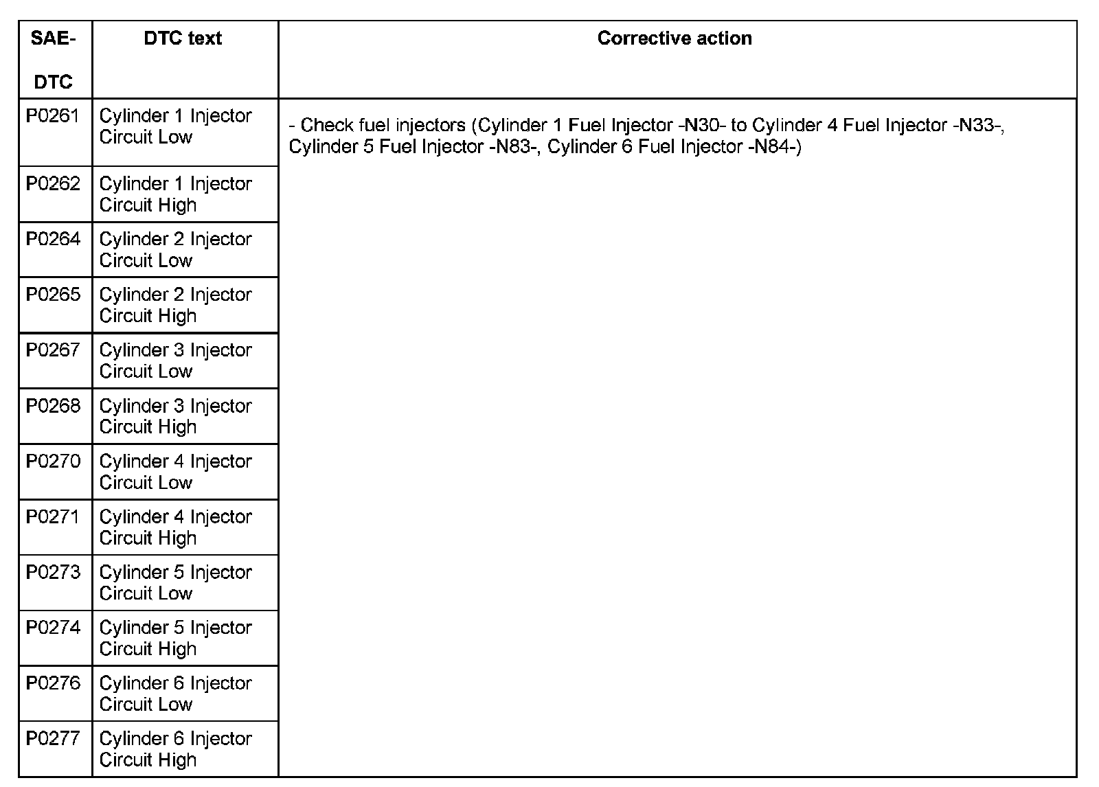 DTC P0261 - P0277:
