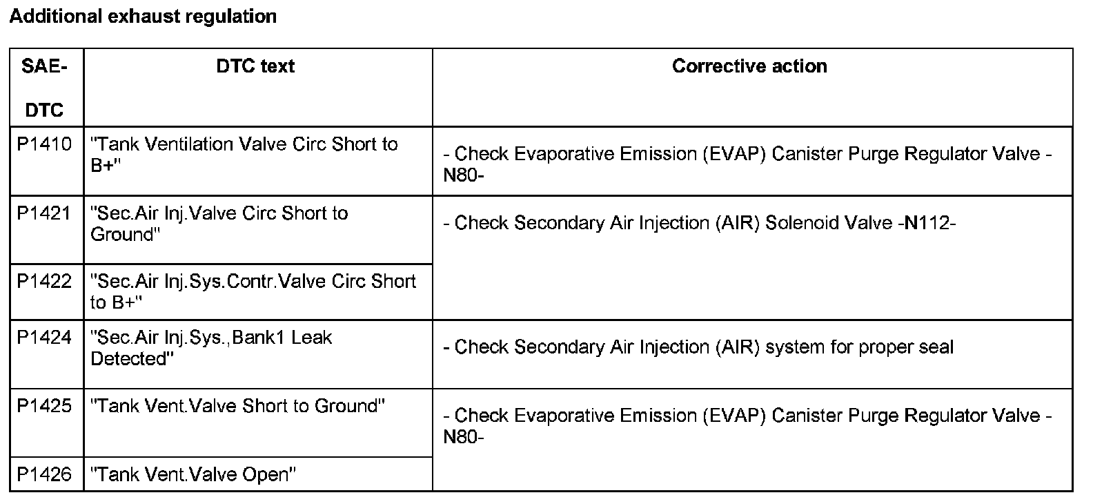DTC P1410 - P1426: