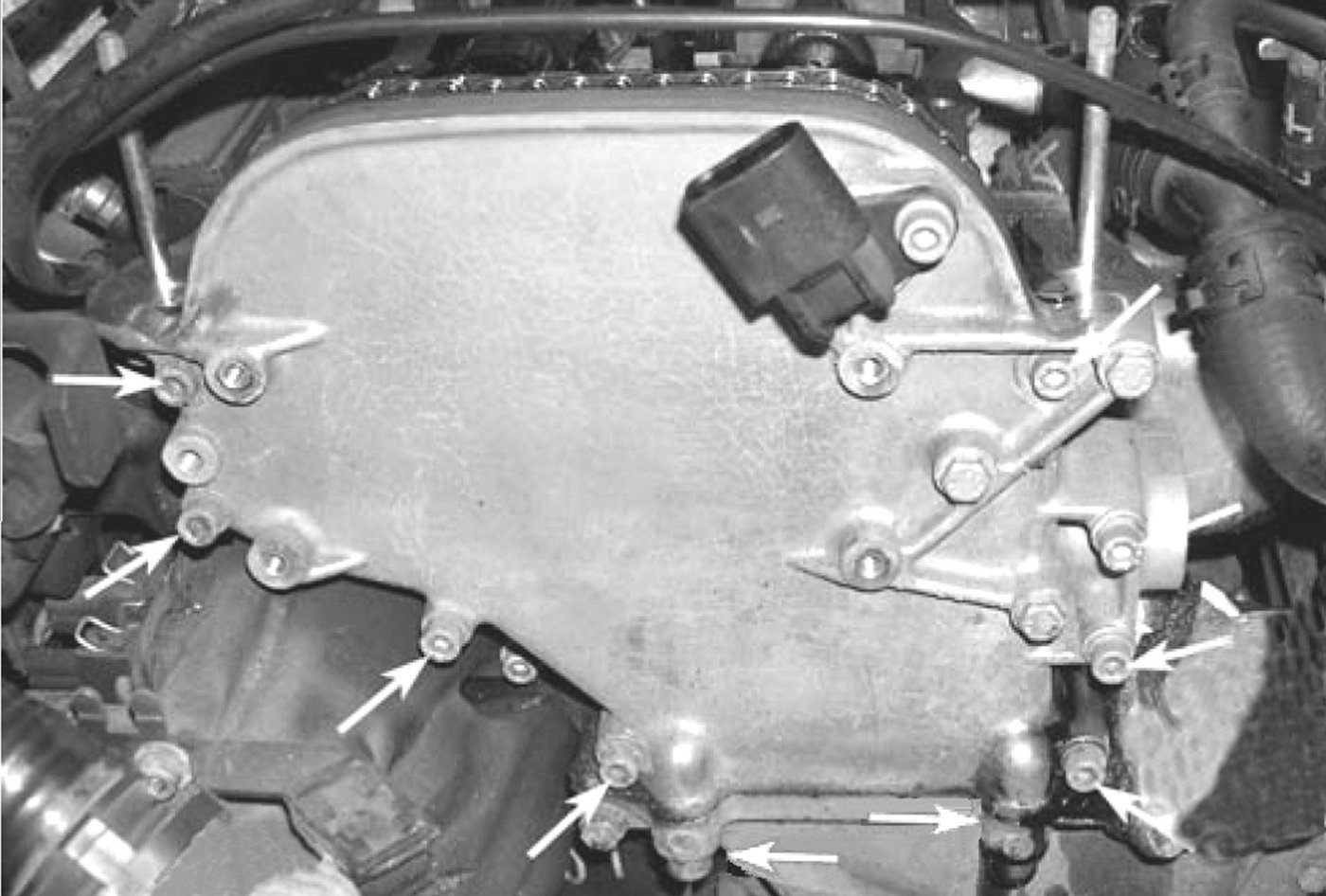 - Initially tighten 8 mm mounting bolts to 25 Nm, then tighten 6 mm mounting bolts to 10 Nm.