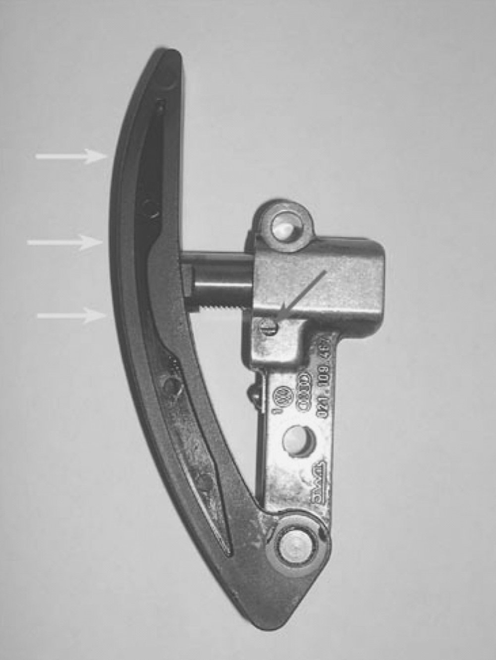 - Push sliding rail onto bearing bolt. Insert short mounting bolt with "D6" locking compound and tighten both bolts to 20 Nm.
