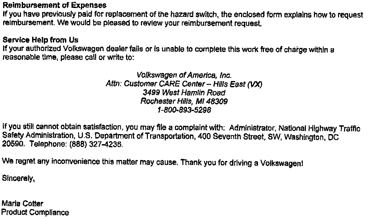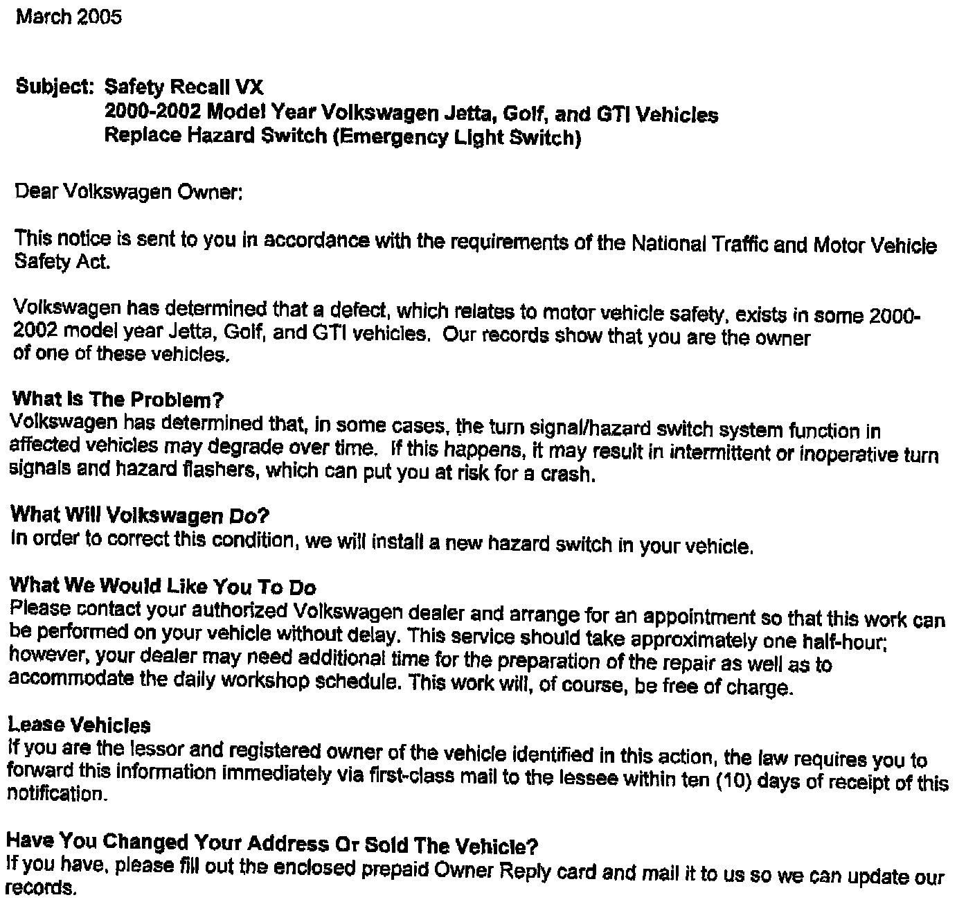 Recall - Hazard Switch Replacement