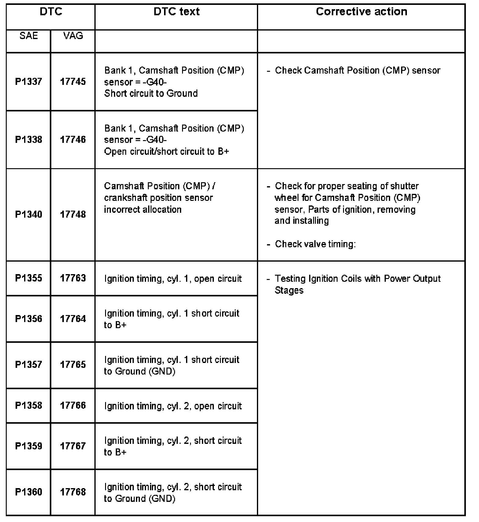 DTC P1337 - P1360: