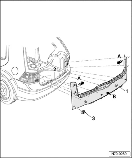 - Release lock carrier cover - 1 - first at top - arrow A - and then at bottom - arrow B - from trim panel - 2 -.