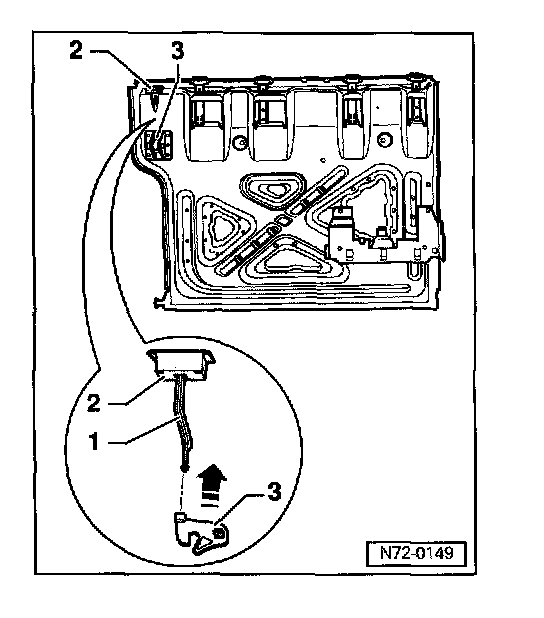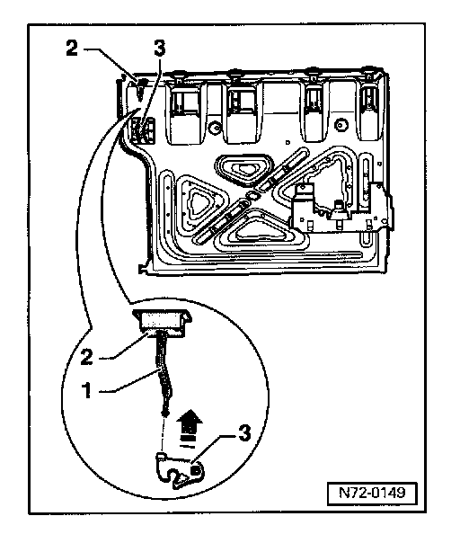 - Press up lock hook -3- -arrow-.