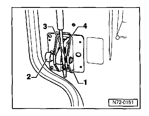 - Press handle -2- rod -1- out of lock hook -3- -arrow-.