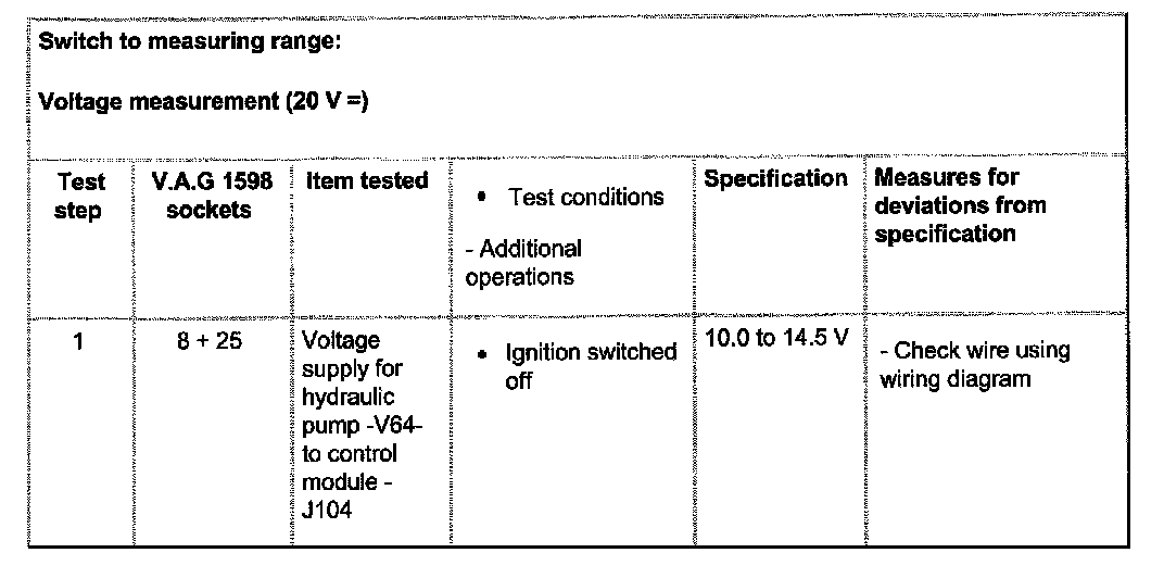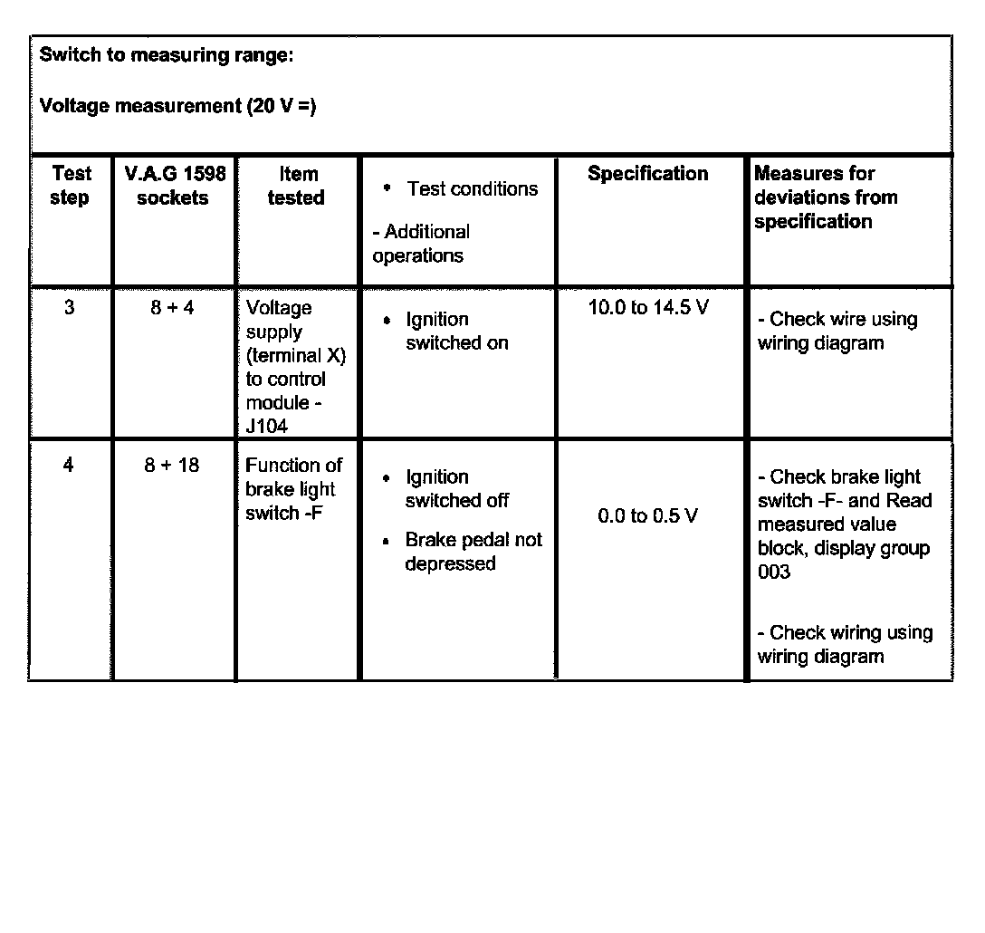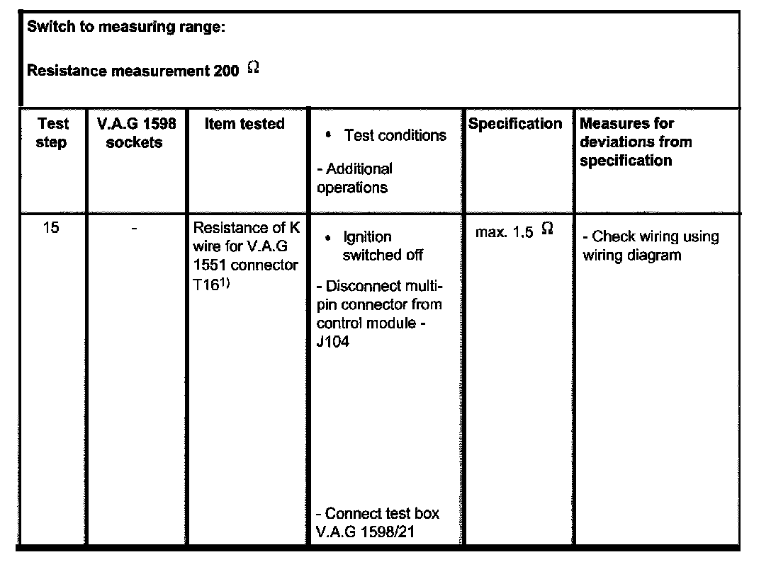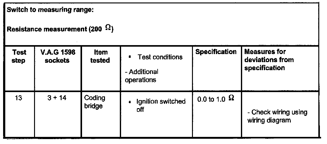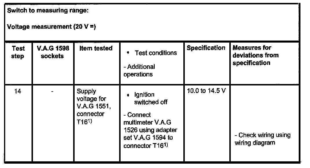 ^ Continuity checks with adapter set V.A.G 1594 A (bridging).