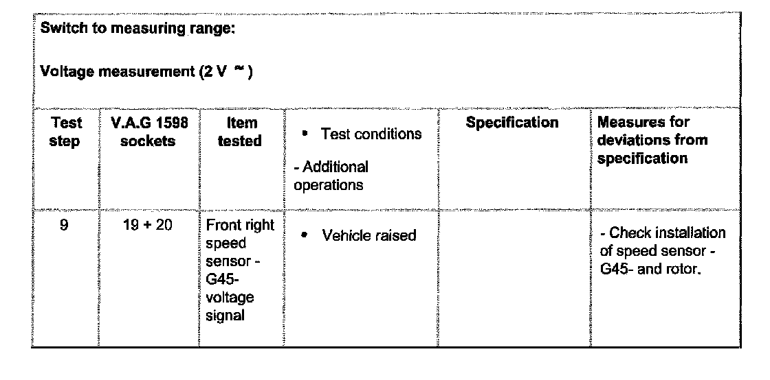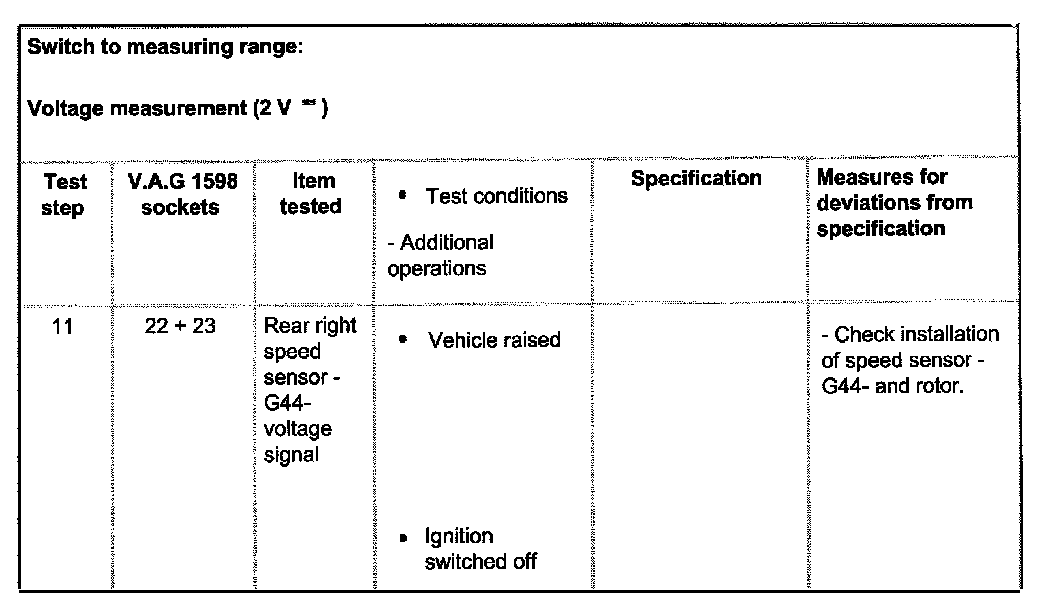 ^ If the readings obtained deviate from the specifications, carry out repair measure in the right-hand part of the table.