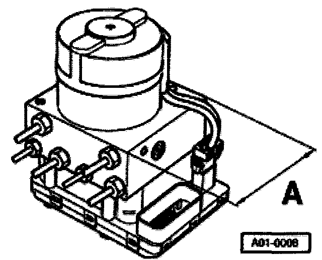The 25-pin ABS control module -J104- forms with the hydraulic unit a compact unit. The unit is located on the left in the engine compartment. The control module is equipped with a DTC memory. The diagnostic connection is located in the center console below the heating/air conditioning controls.