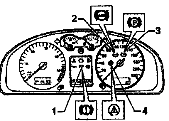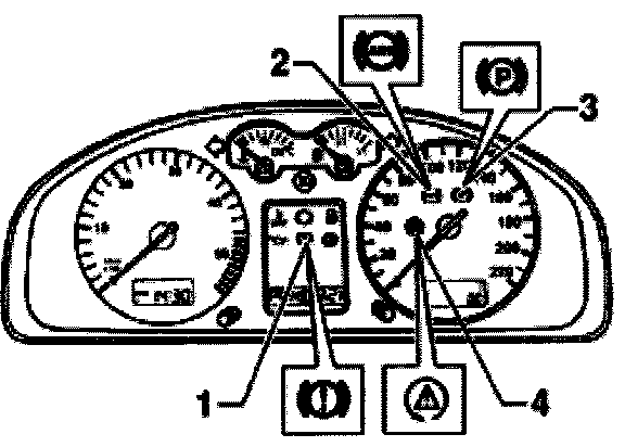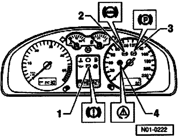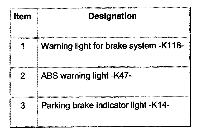 For vehicles with ABS/EDL/ASR and/or a radio/navigation system, the warning light for brake system -K118- is at position -3-.