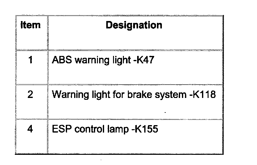 For vehicles without ABS/ASR, ESP Control lamp -K155- is not installed.