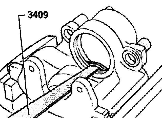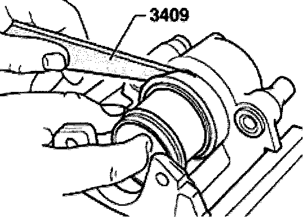 ^ Hold piston in front of caliper and insert inner sealing lip into groove in cylinder using wedge 3409.