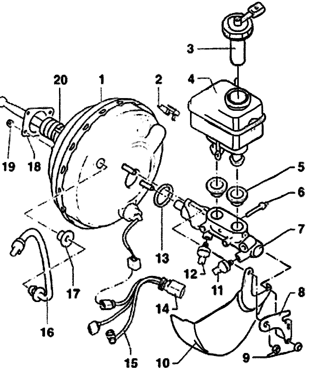 Note: Complete brake master cylinder and brake booster can be replaced independently of each other.