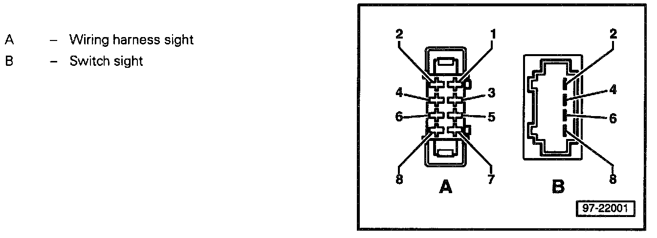 In driver's door, see mirror adjustment switch (E43), refer to the wiring diagram "Comfort System (Vehicles With Power Windows)".