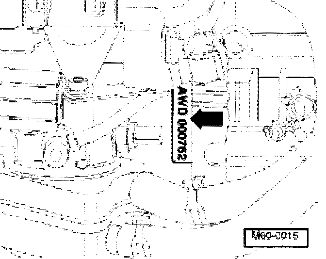 Additionally there is a sticker on the toothed belt guard with "Engine code" and "Serial number"-arrow-.