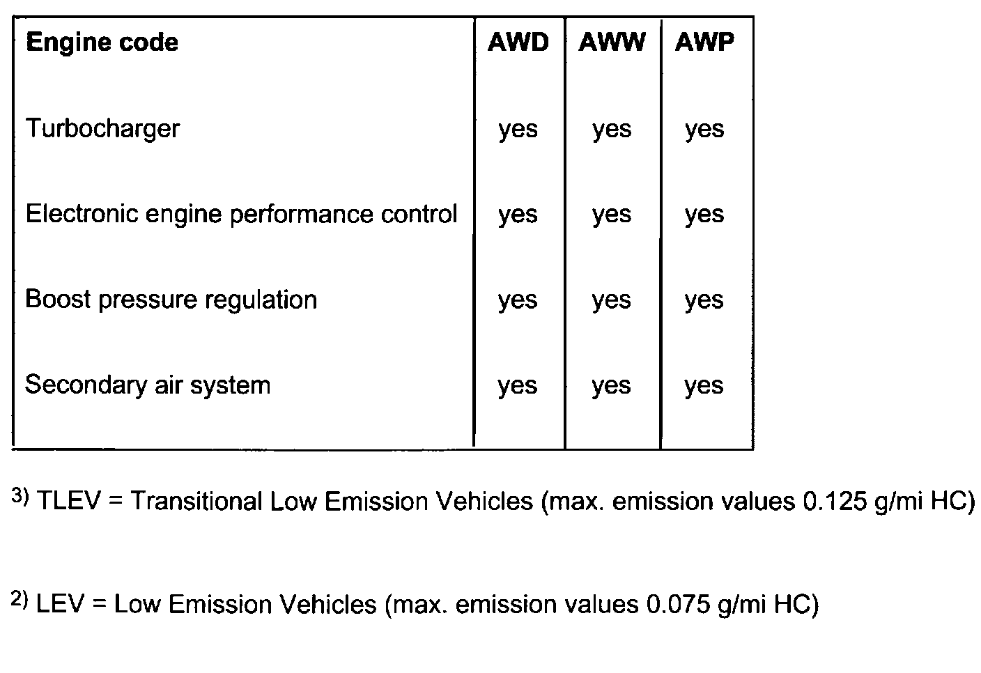The engine number consists of up to nine characters (alphanumeric). The first part (maximal 3 characters) makes up the "engine code", and the second part (6 characters), the "serial number". If more than 999,999 engines with the same engine code are produced, the first of the six characters is replaced with a letter.