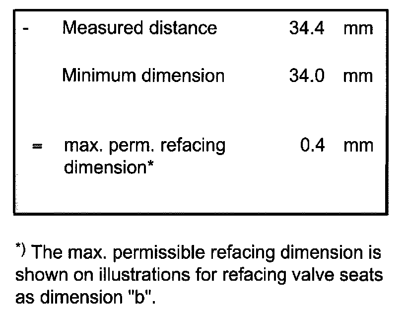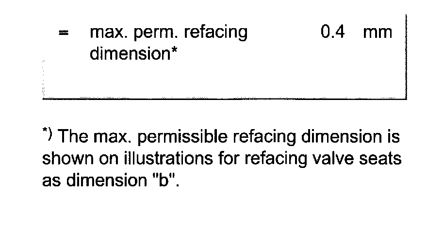 ^ The valve seats should only be refaced just enough to produce a perfect seating pattern. The maximum permissible refacing dimension must be calculated before work is carried out. If the refacing dimension is exceeded, the function of the hydraulic tappets can no longer be guaranteed and therefore the cylinder head should be replaced.