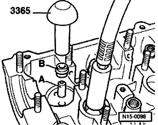 - Insert thrust piece 3362/1 in valve spring depressor 3362.