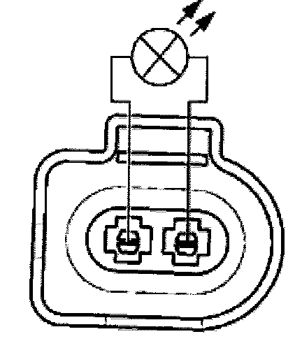 - Connect VAG 1527B voltage tester to disconnected connector for after-run coolant pump (V51) with auxiliary cable from V.A.G 1594 A LED must light up.