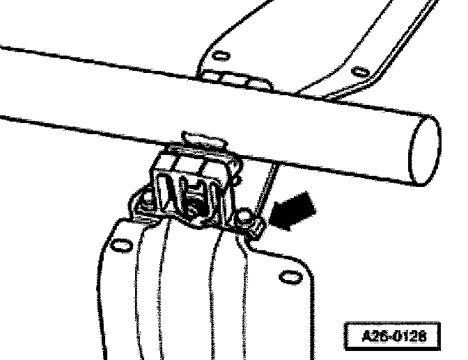 ^ When installing position repair double clamp-4-between points-arrows 1 and 3-. Tightening torque: 40 Nm