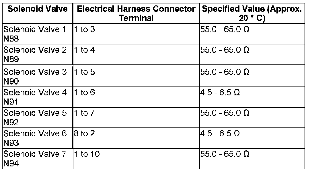 This procedure is used to diagnose all Solenoid Valves in the valve body.