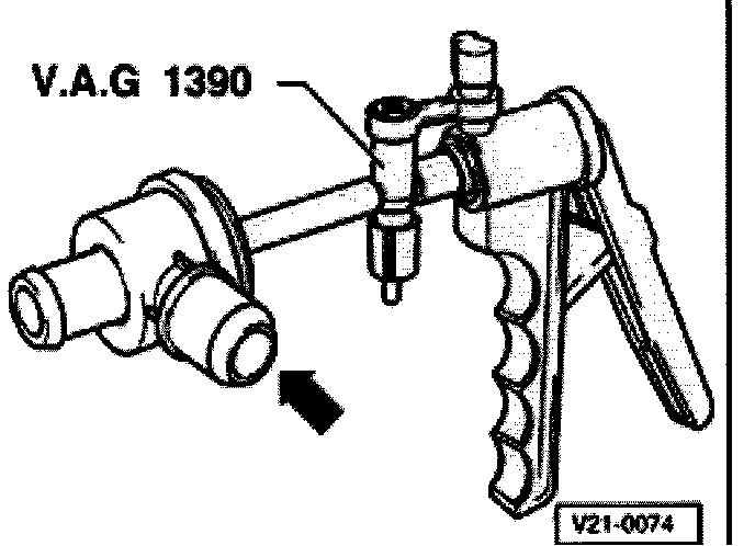 - Connect hand vacuum pump V.A.G 1390 to vacuum connection on overrun valve.
