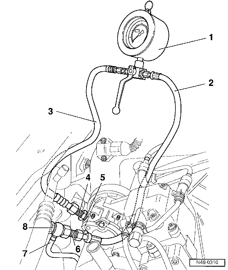 - Close cut-off valve (not longer than 5 seconds) and read pressure, with engine idling.