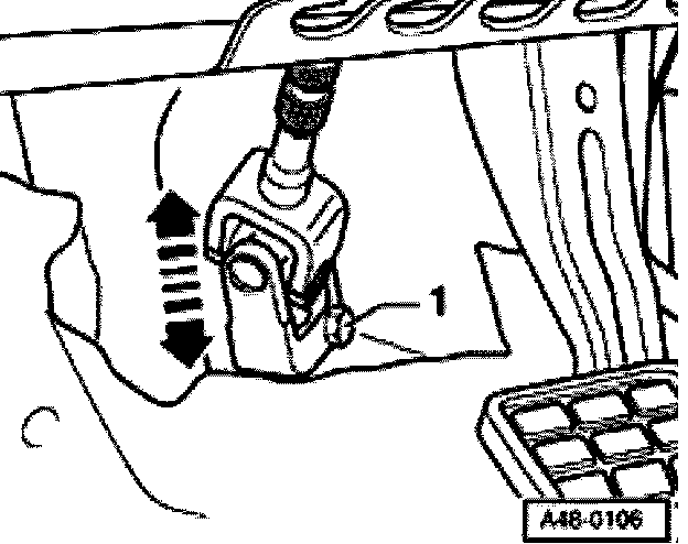 - Press wire clip -1- up or down according to installation position and pull ignition lock cable -2- out at same time.