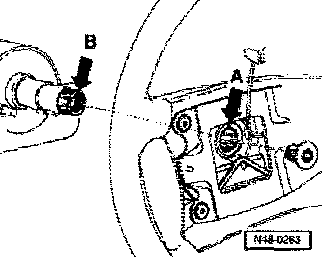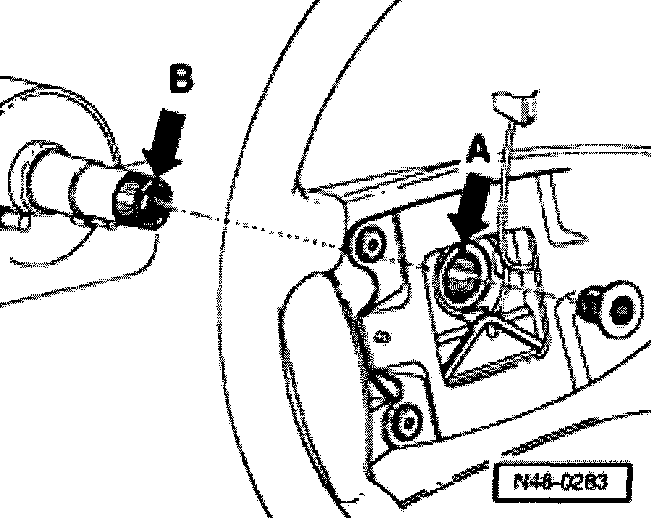 - Install steering wheel so marked line (arrow A) on steering wheel and center punch mark (arrow B) on steering column align.