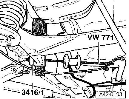 - Position VW 771 slide hammer and pull out bonded rubber bushing