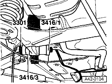 - Remove bolts -1 - on rear axle bearing bracket, both sides.