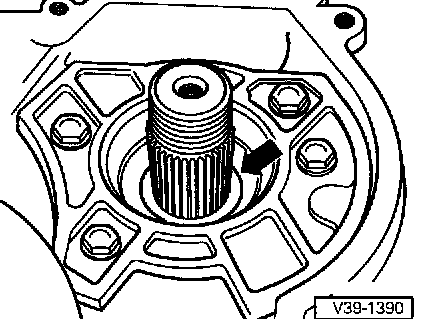 - Place two shims (each 1.5 mm thick) (arrow) on drive pinion.
