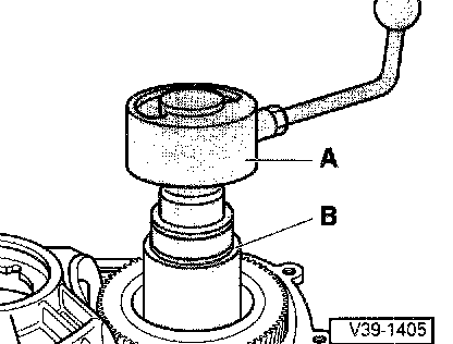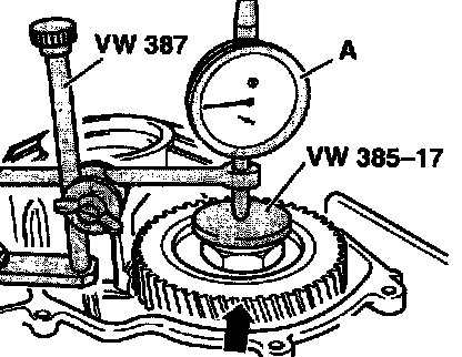 - Insert dial gauge -A- and zero with a preload of 1 mm. Move drive pinion up and down. Read play at gauge and note (example 0.93 mm).