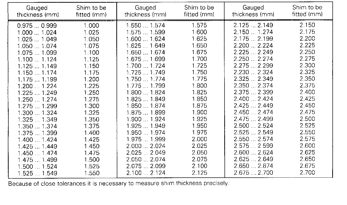 - Remove output gear. Determine size of shim on basis of table.