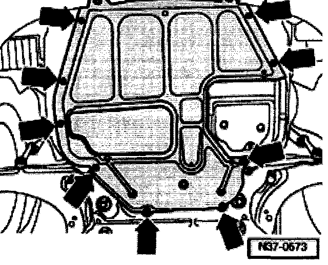 - Remove sound insulation tray -arrows-.