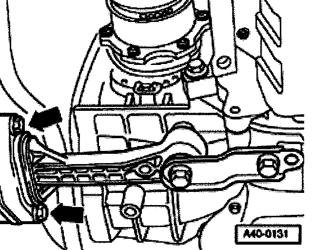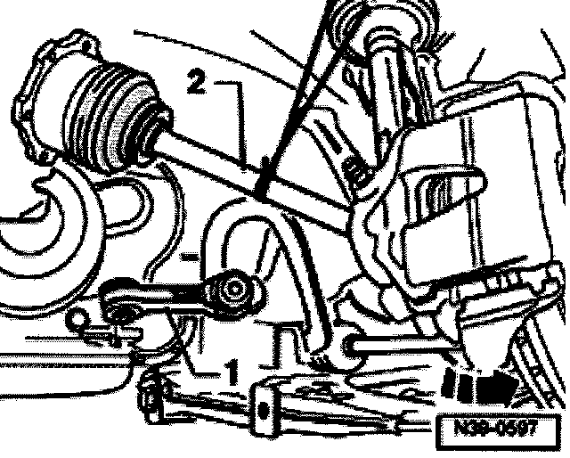 - Remove left coupling rod -1- from control arm and turn rod upward.