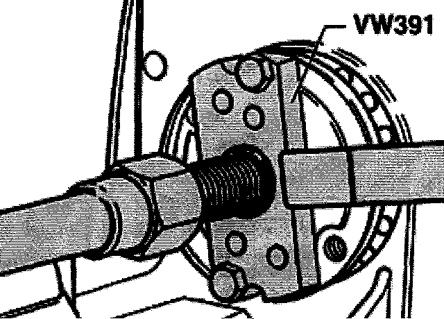 Note: Drive flange can also be pulled in with VW 391.