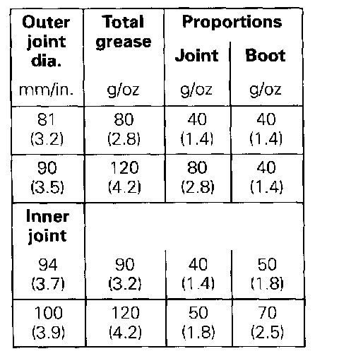 Constant velocity joints are packed with grease G 000 603: