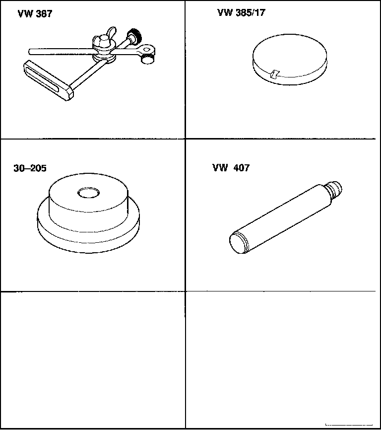 - Press tapered roller bearing outer race without shim into the transmission housing using thrust piece 30-205.