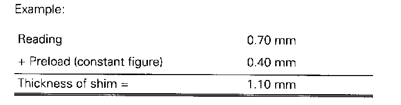 The specified bearing preload is obtained by adding a constant figure (0.40 mm) to the reading obtained.