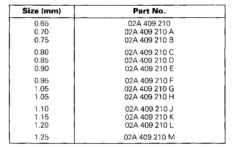 If the size of shim required is larger than those listed in the table, insert two shims totaling the correct figure.