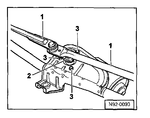 - Remove three M6 securing bolts -3- for wiper motor.