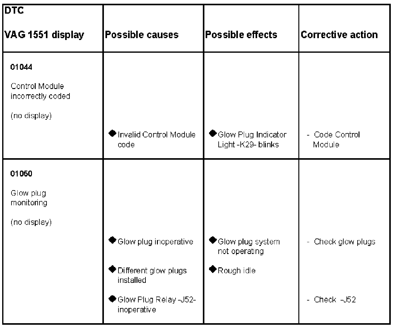 DTC 01044 - 01050: