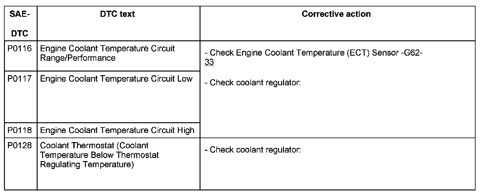 DTC P0116 - P0128: