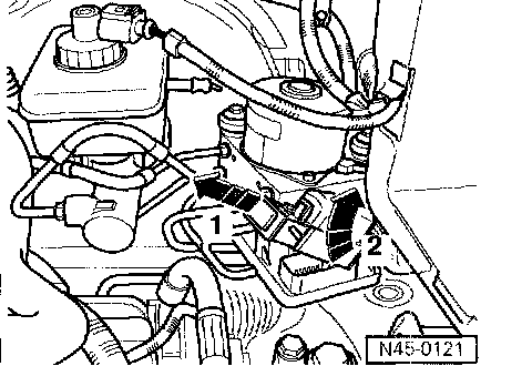 - Release ABS control module connector (arrow -1-) and remove (arrow -2-).