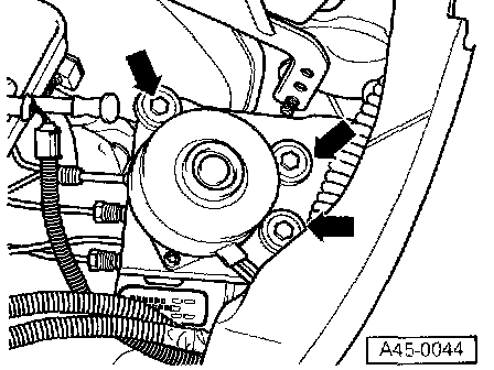 - Remove bolts from bracket for hydraulic unit (arrows).