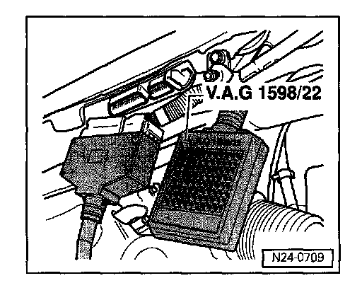 - Connect test box V.A.G 1598/22 to control unit wiring harness.