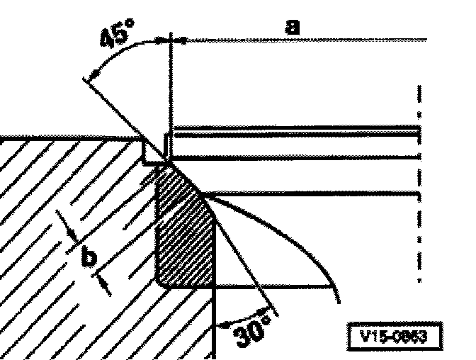 - Calculate maximum permissible reworking dimension from measured distance -a- and minimum dimension.